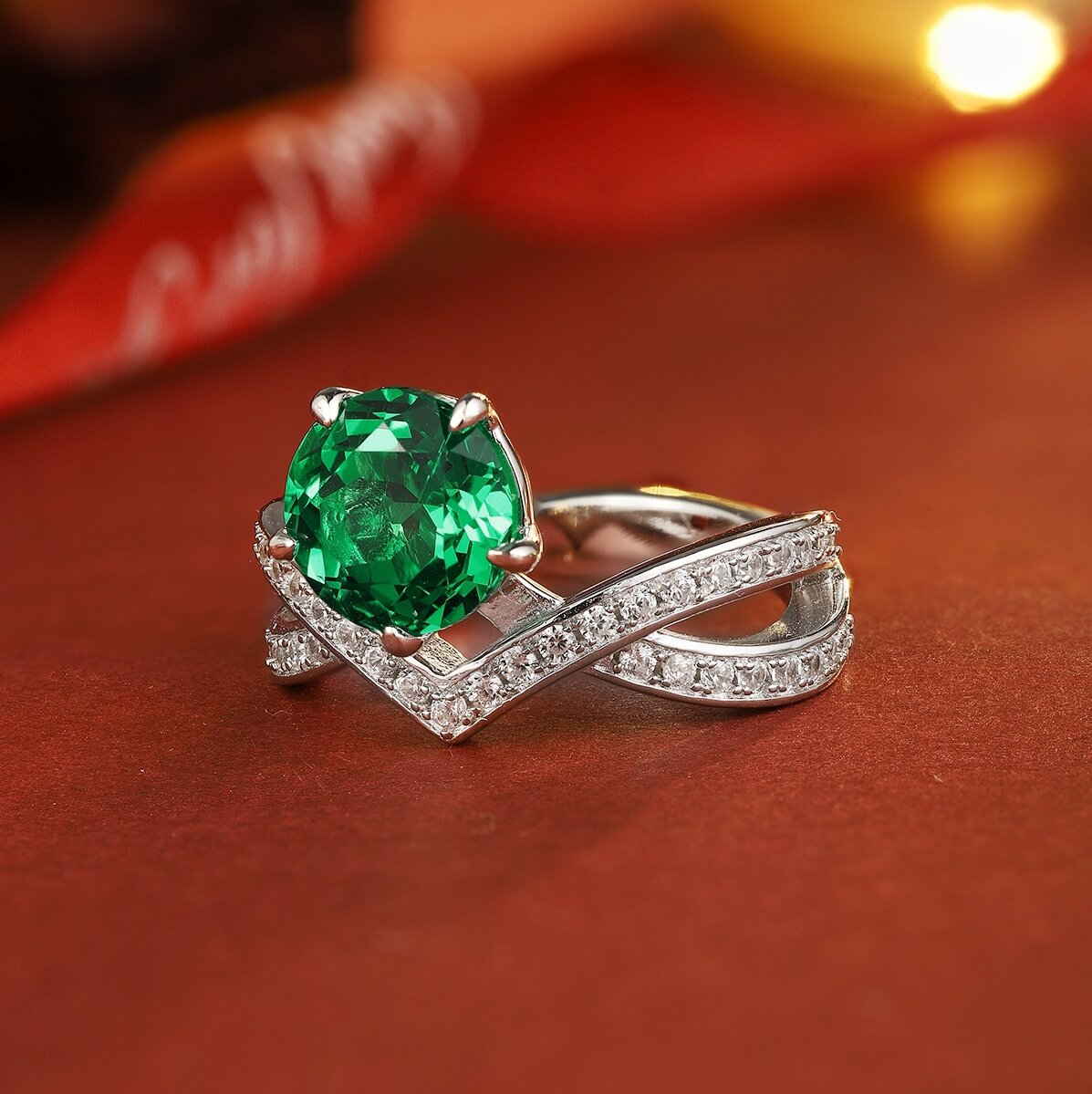 Ruif Jewelry Classic Design S925 Silver 1.96ct Lab Grown Emerald Ring Wedding Bands