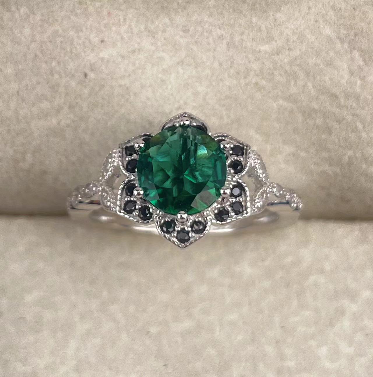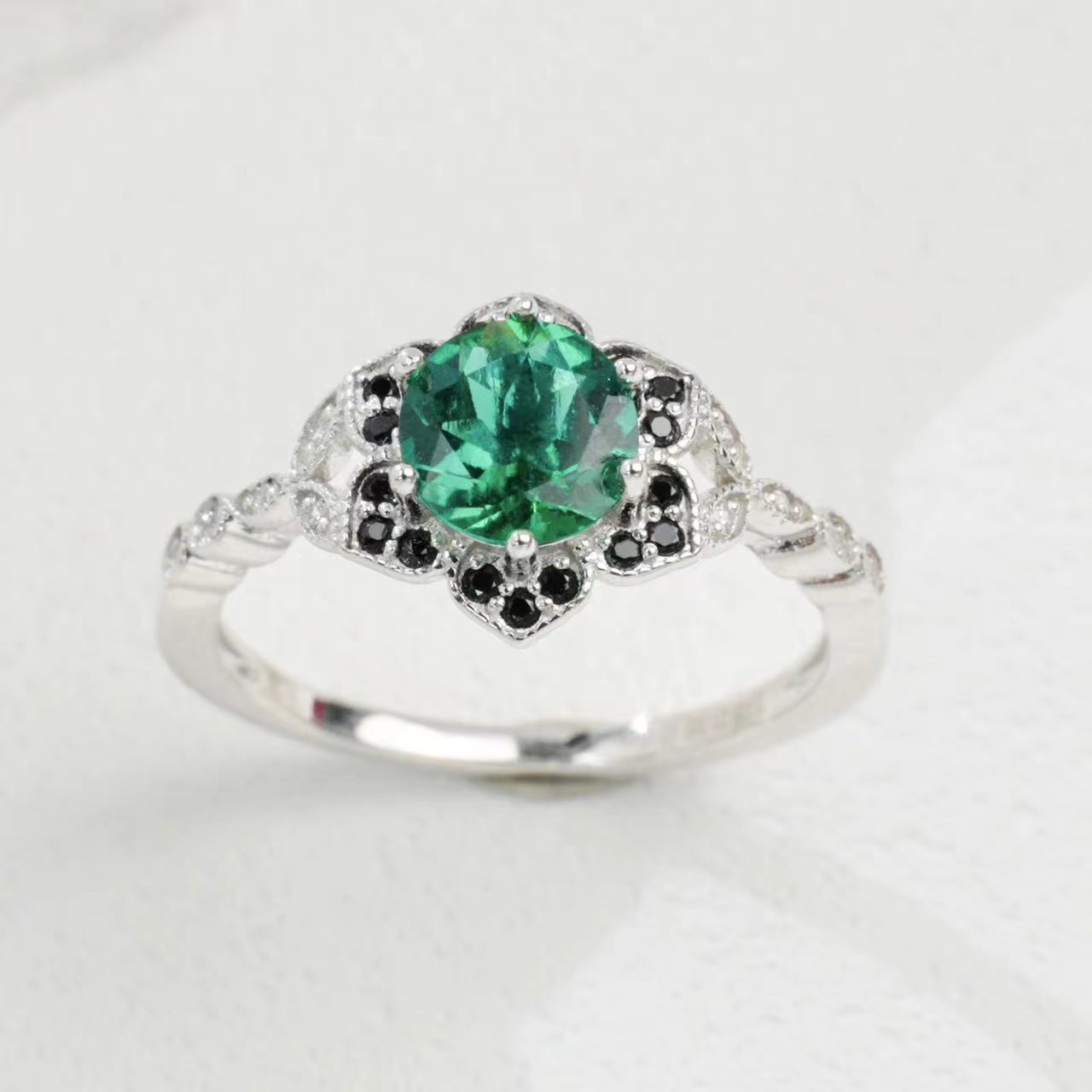Classic Design S925 Silver Lab Grown Emerald Ring Wedding Bands