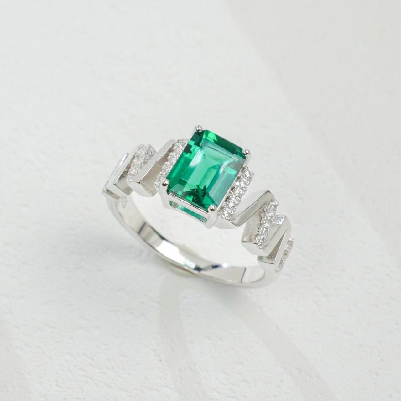 Classic Design S925 Silver Lab Grown Emerald Ring Wedding Bands