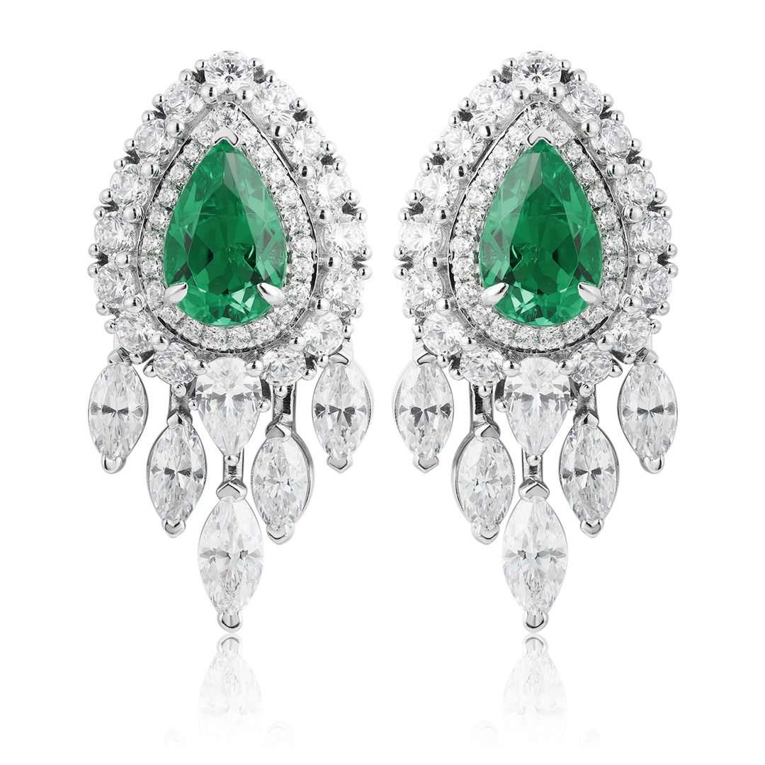 Classic Design S925 Silver Lab Grown Emerald Earrings