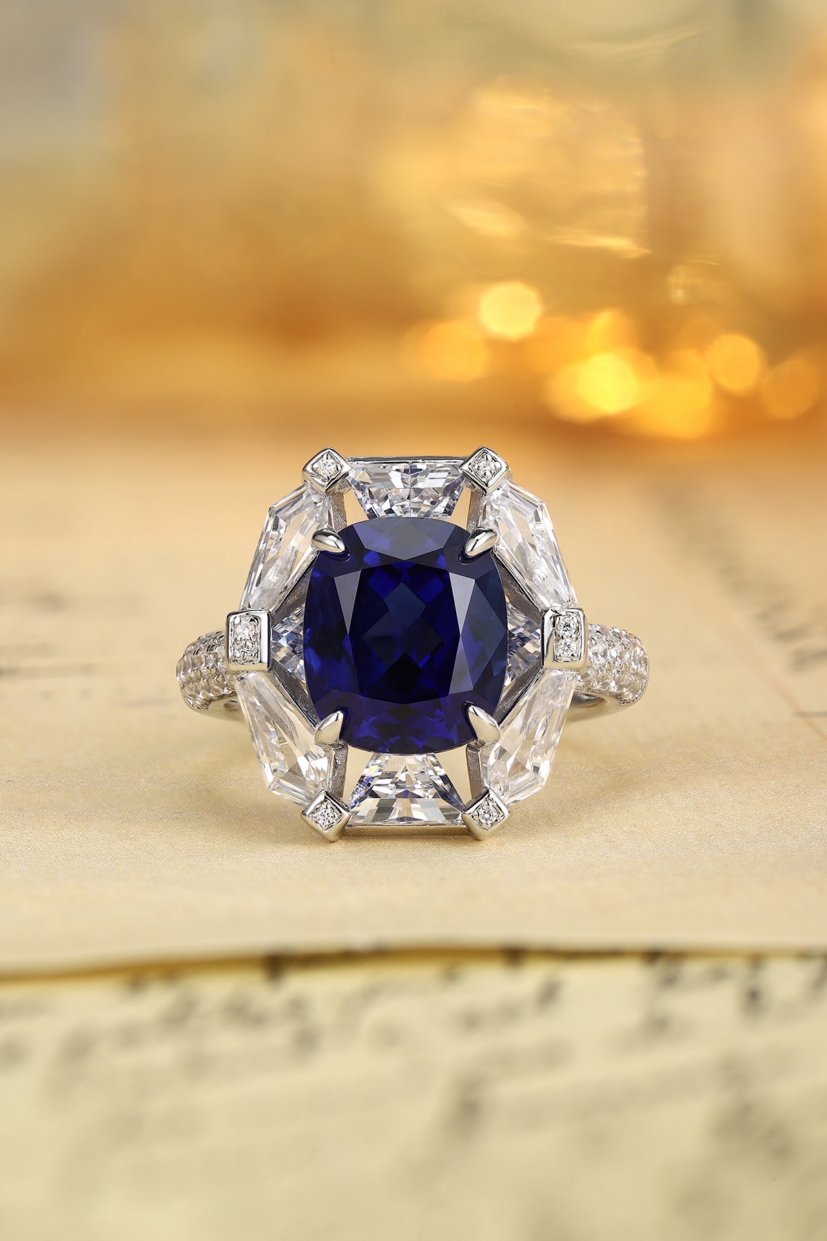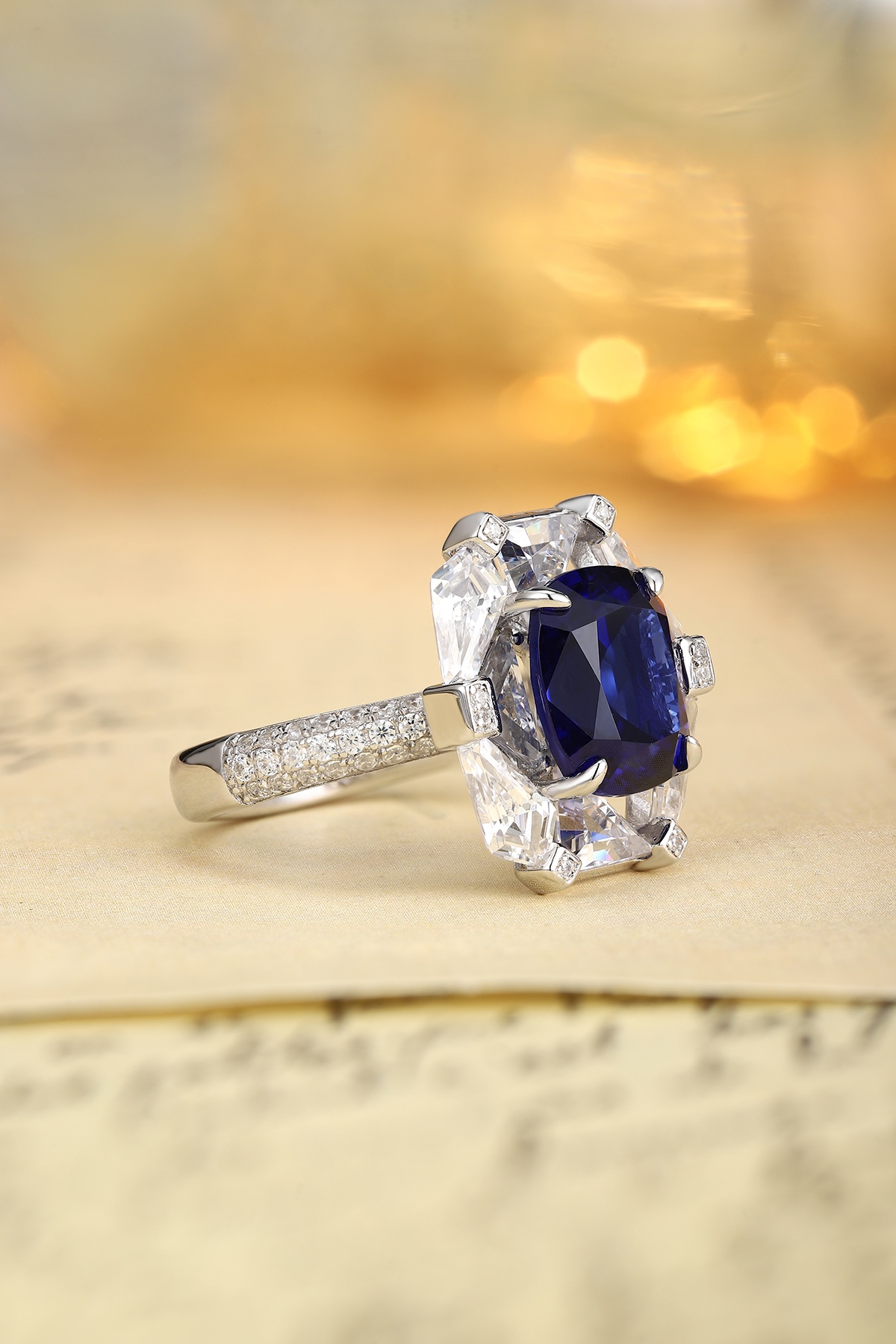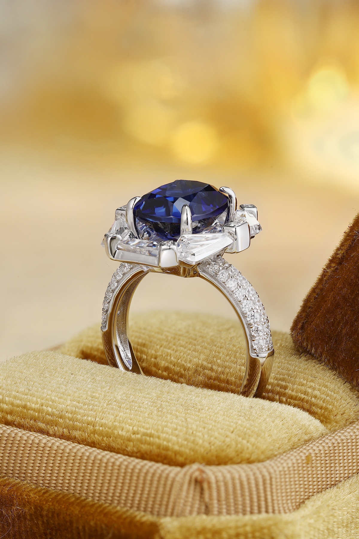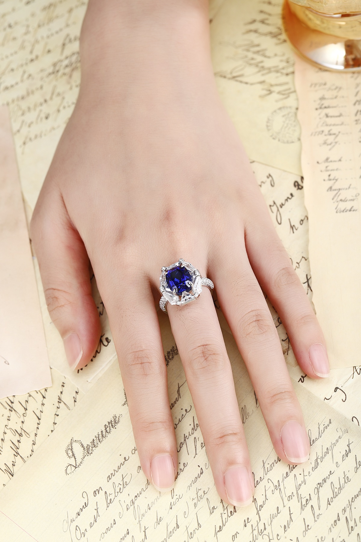 Ruif Jewelry Classic Design S925 Silver 5.42ct Lab Grown Sapphire Ring Wedding Bands for party gift