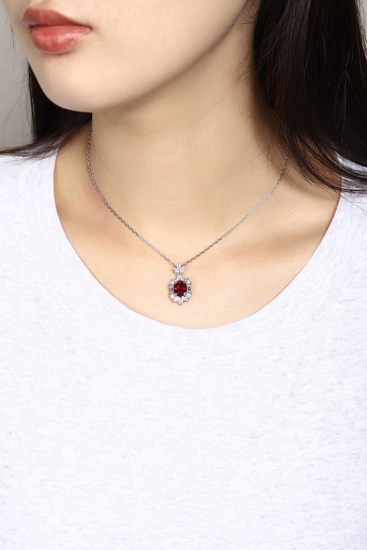 Ruif Jewelry Classic Design S925 Silver 2.66ct Lab Grown Ruby Pendant Necklace Gemstone Jewelry