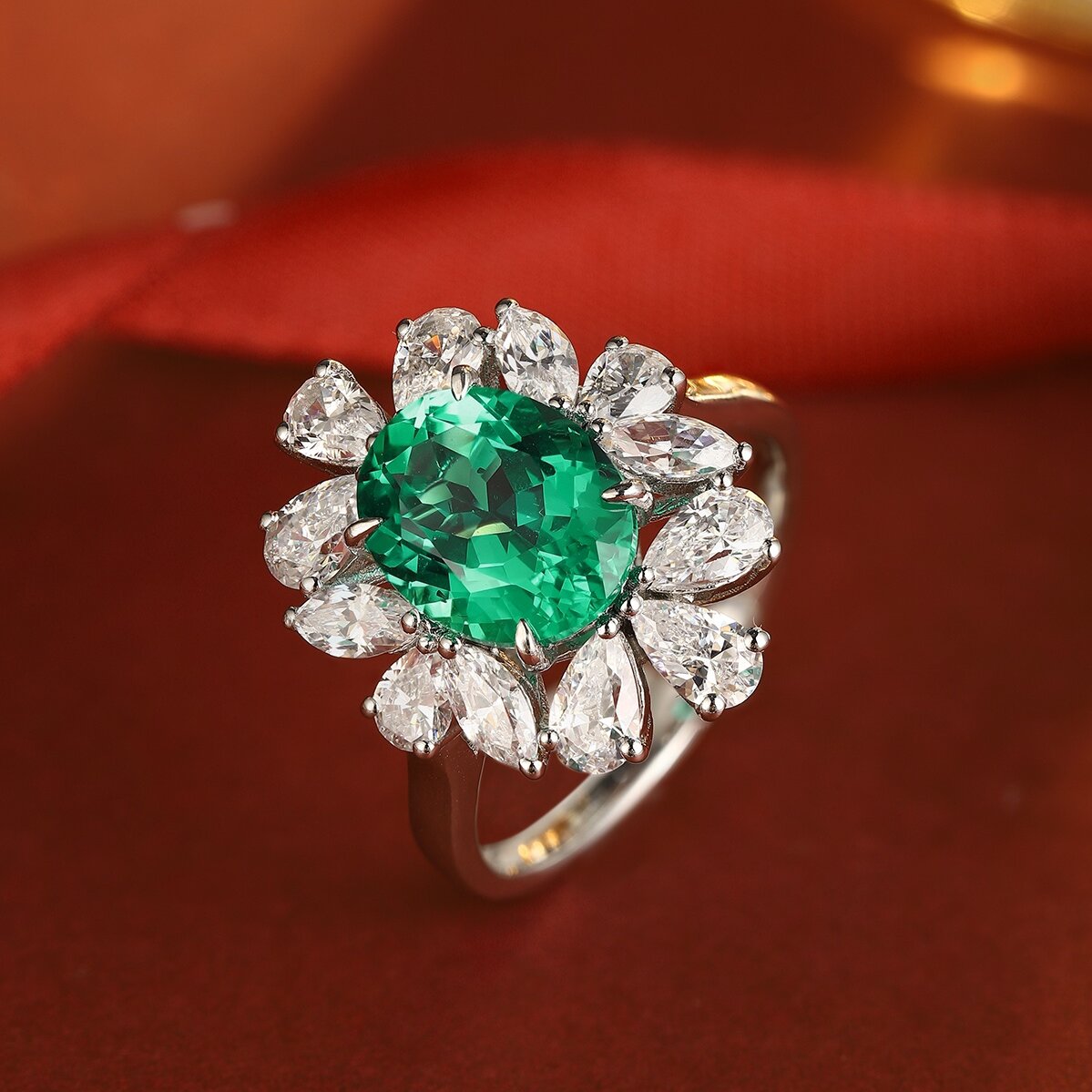 Ruif Jewelry Classic Design S925 Silver 2.6ct Lab Grown Emerald Ring Wedding Bands