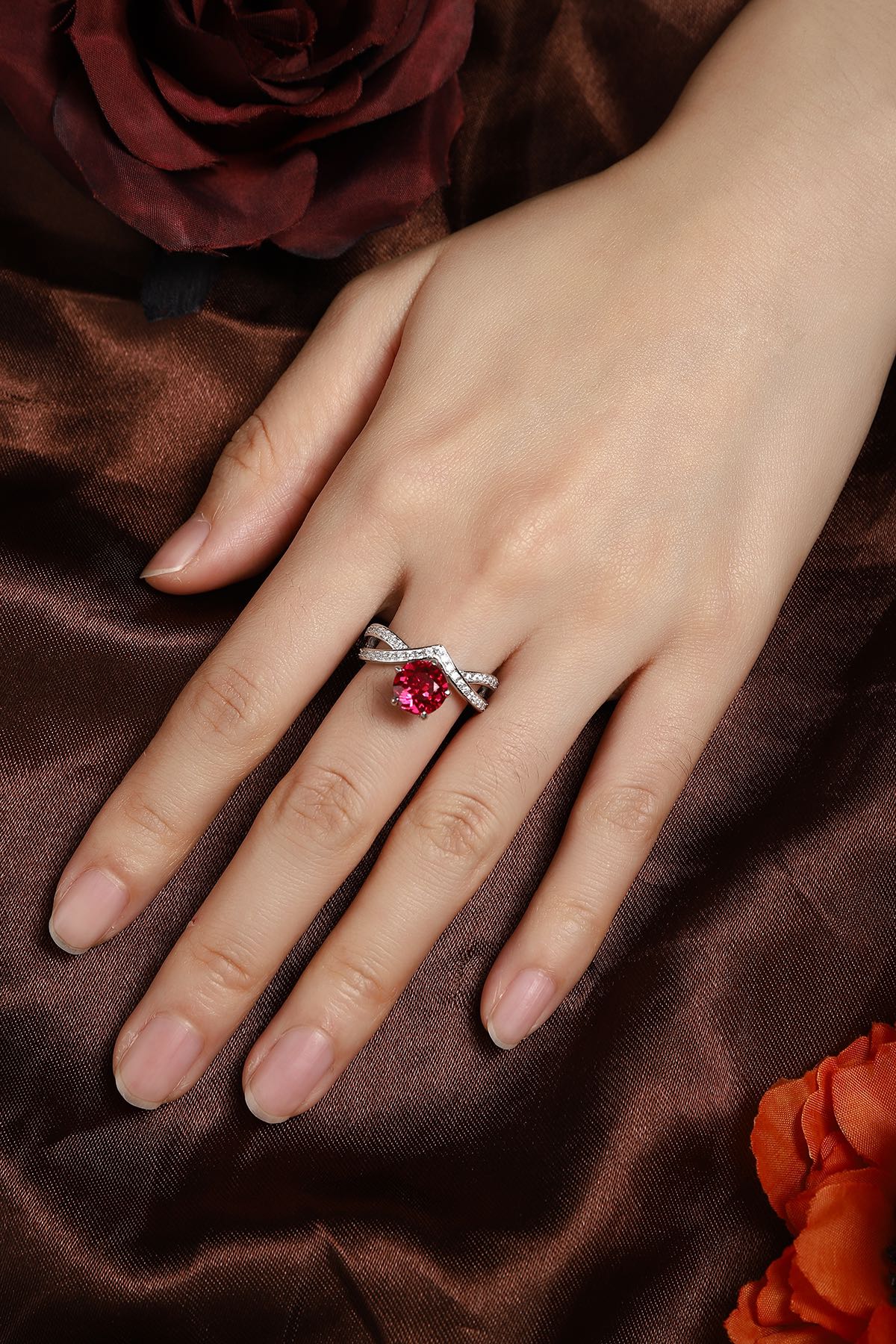 Ruif Jewelry Classic Design S925 Silver 2.895ct Lab Grown Ruby Ring Wedding Bands