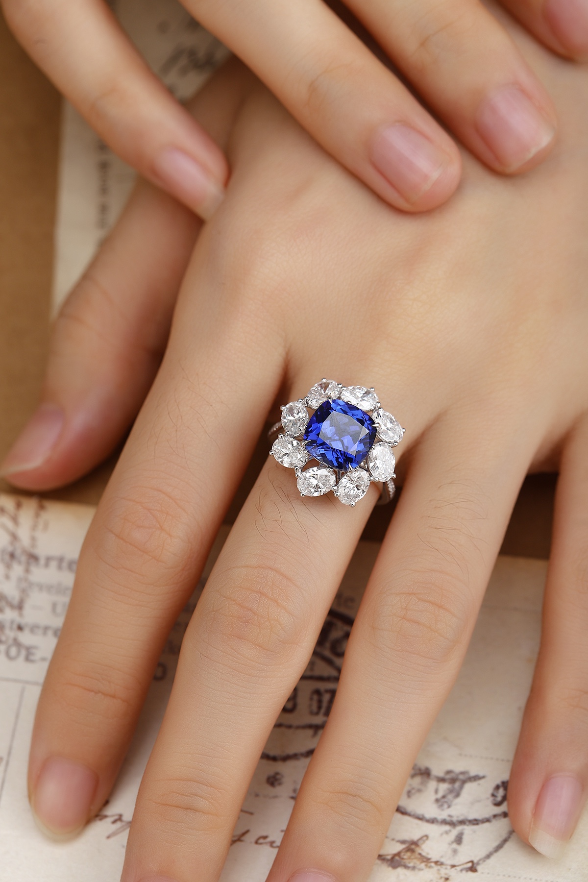 Ruif Jewelry Classic Design PT950 Platinum 4.46ct Lab Grown Sapphire And 2.595ct Lab Grown Diamond Ring Wedding Bands