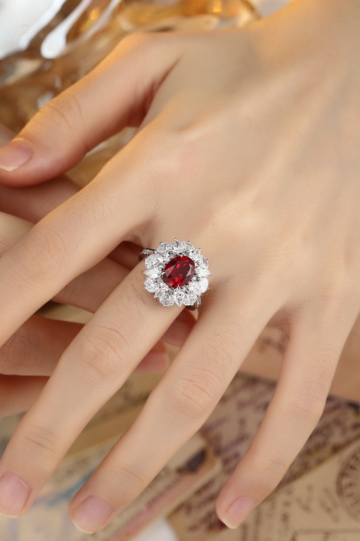 Ruif Jewelry Classic Design PT950 Platinum 6.66ct Lab Grown Ruby And 4.12ct Lab Grown Diamond Ring Wedding Bands