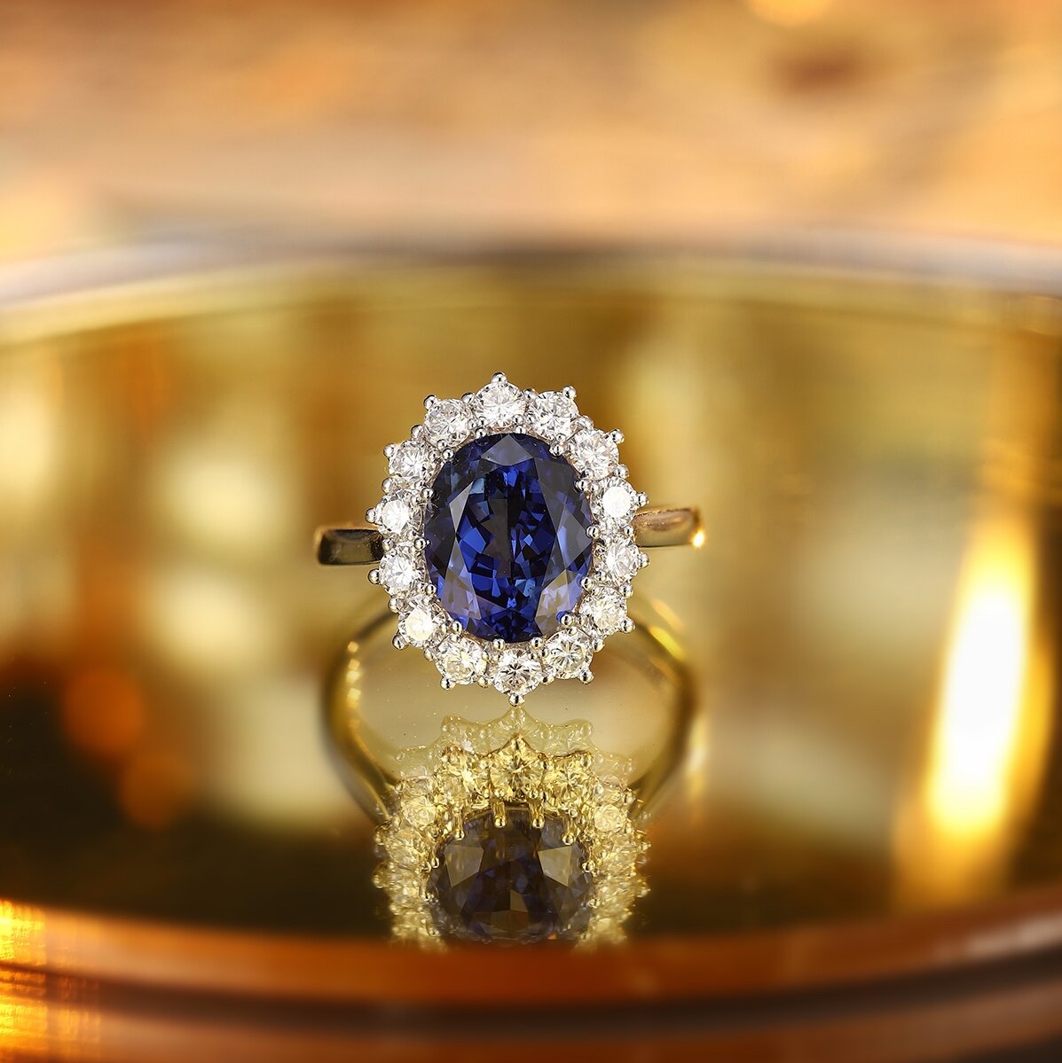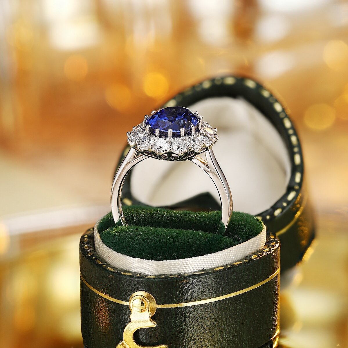 Metal:PT950Main Stone: 3ct lab grown sapphireSide stone: 0.4ct DEF lab grown diamondCustomization: 1.can do same design in 18k 14k 10k and 9k go..