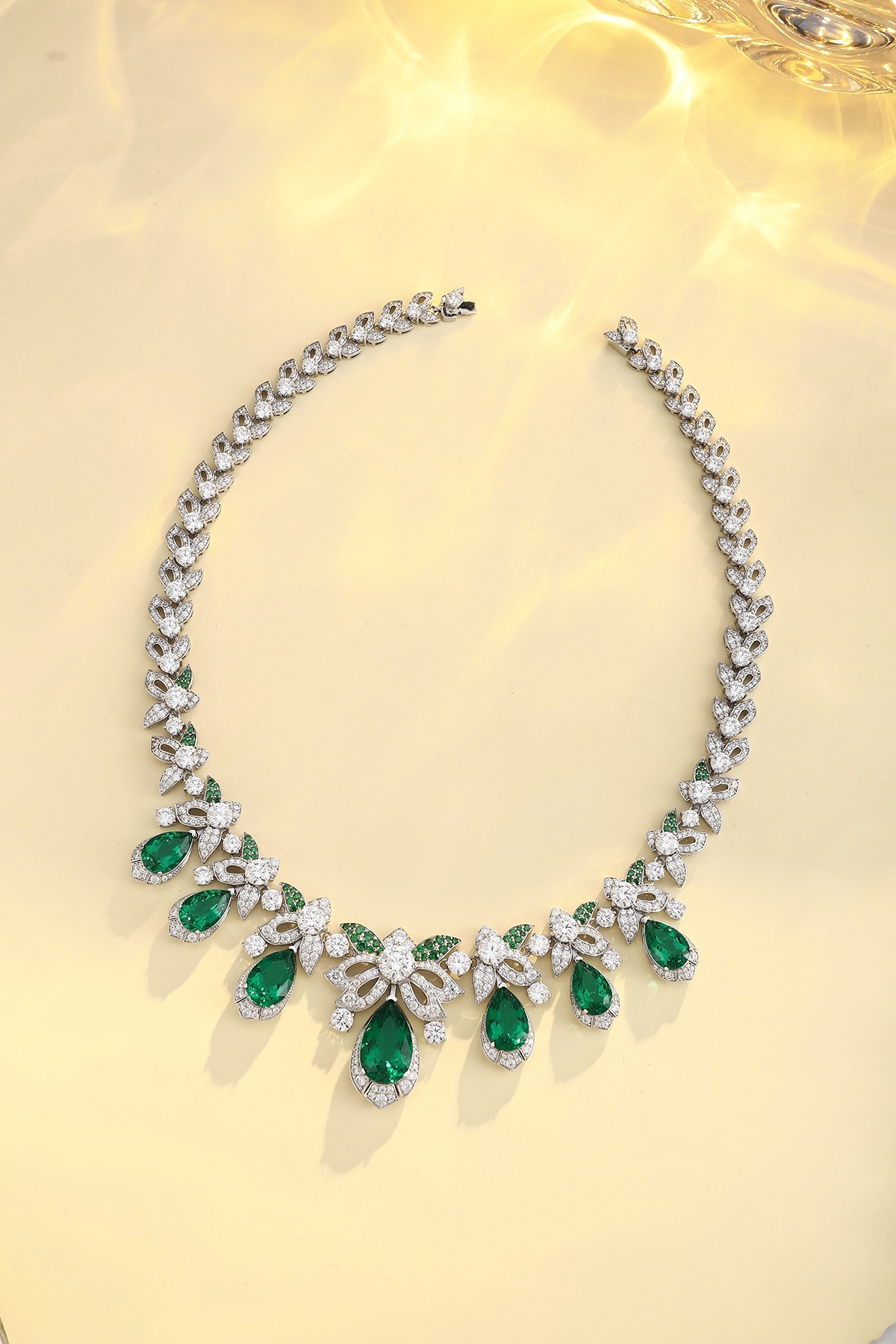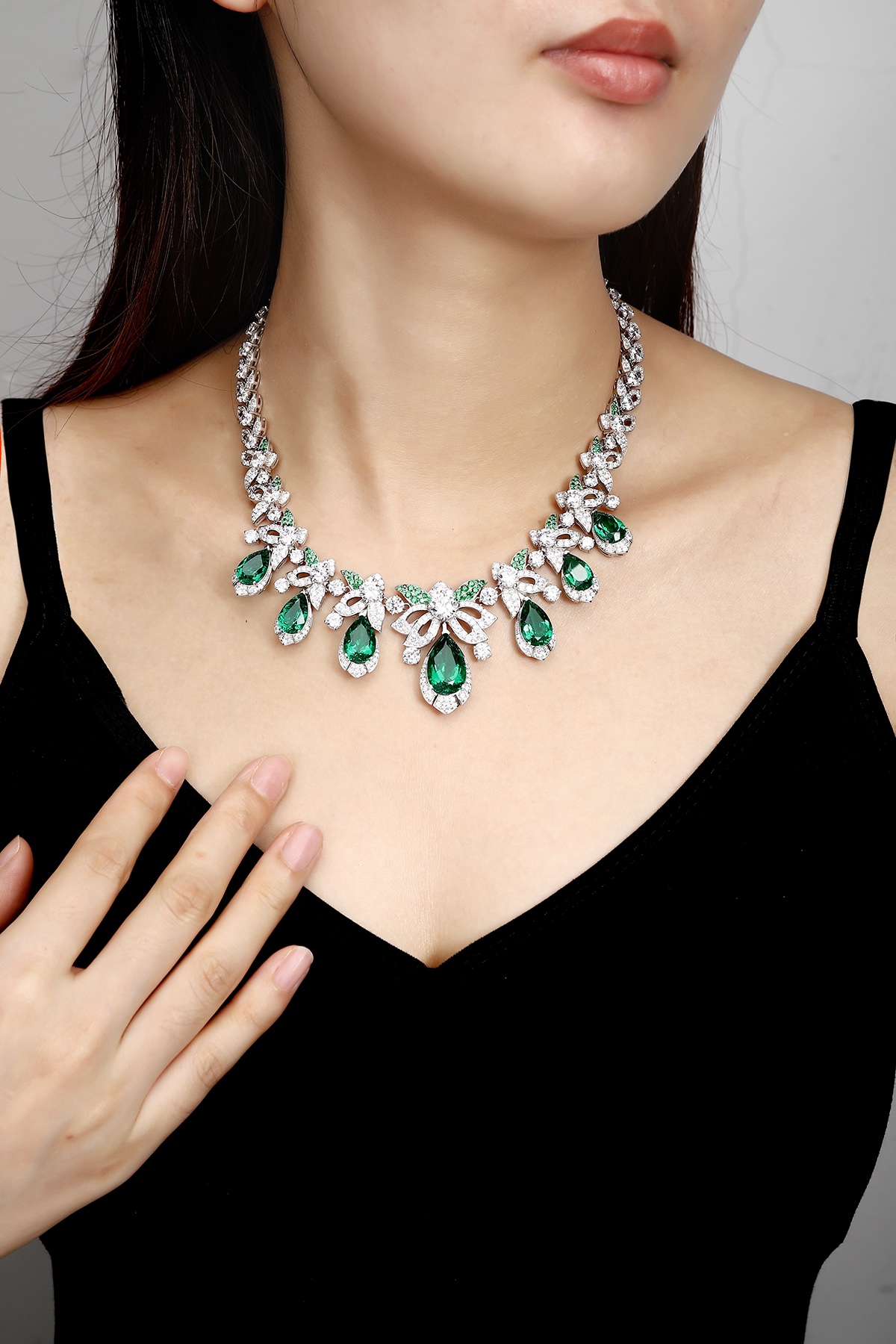 Classic Design S925 Silver Lab Grown Emerald Pendant Necklace lab emerald:18.56ctcubic zircon:61.65ctweight:42.21g..