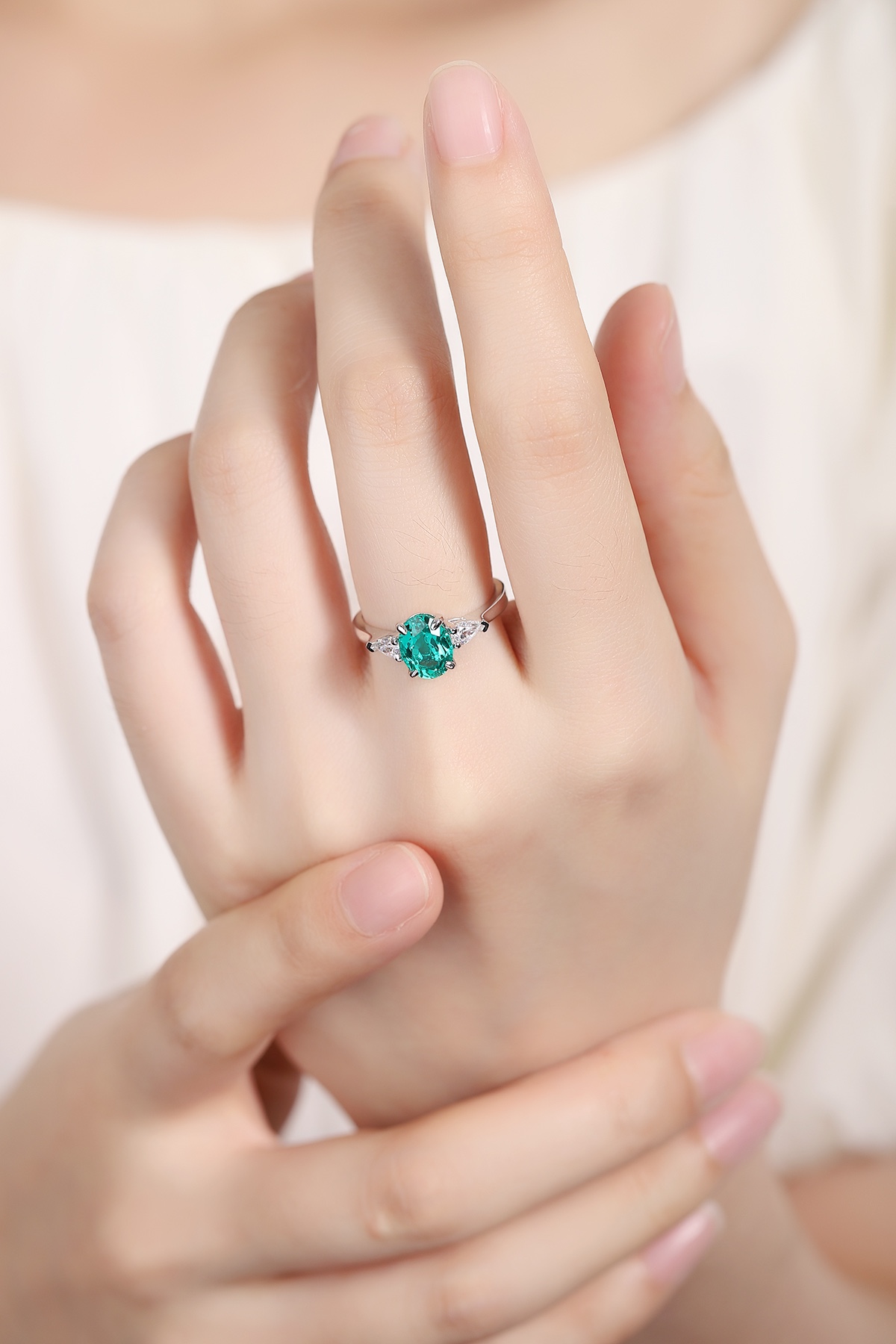 Ruif Jewelry Classic Design PT950 Platinum Ring 1.47ct Lab Grown Emerald and 0.3ct Lab Grown Diamond Ring Gemstone Jewelry
