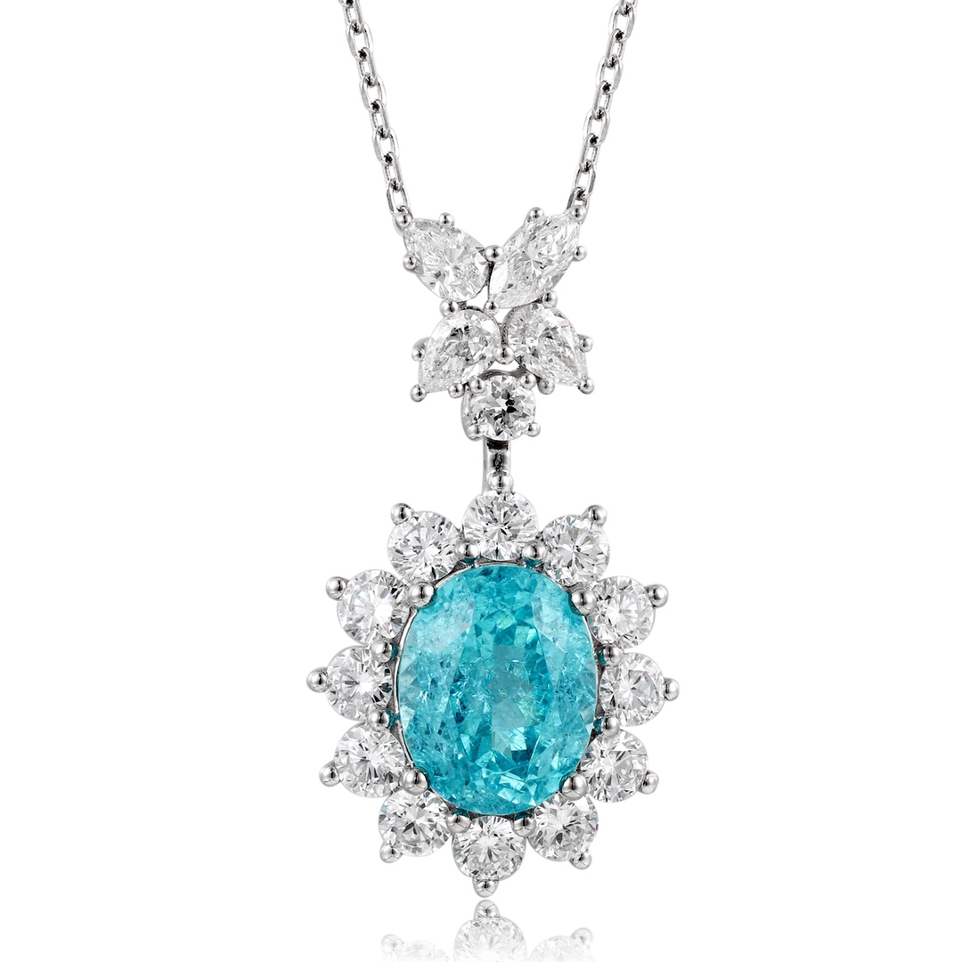 Classic Design PT950 Platinum 3.95ct Lab Grown Paraiba Pendant And 0.8775ct Lab Diamond Pendant Gemstone JewelryLab Paraiba:3.95ctLab diamond:0.8775ct..