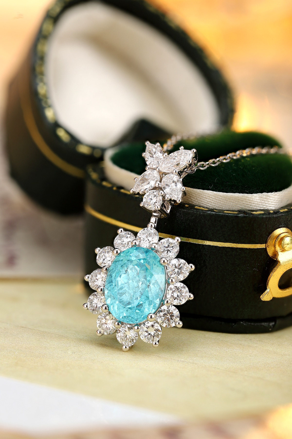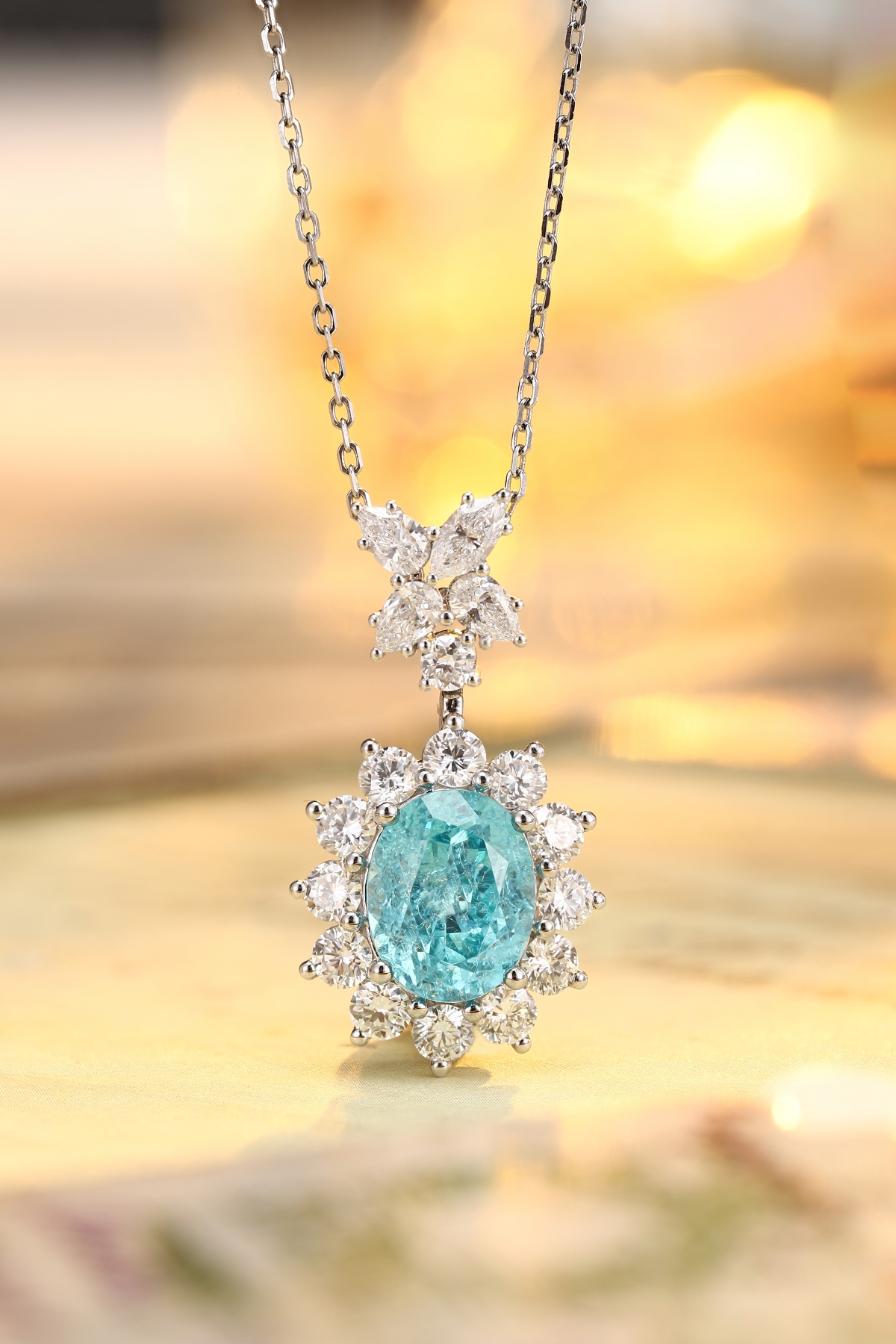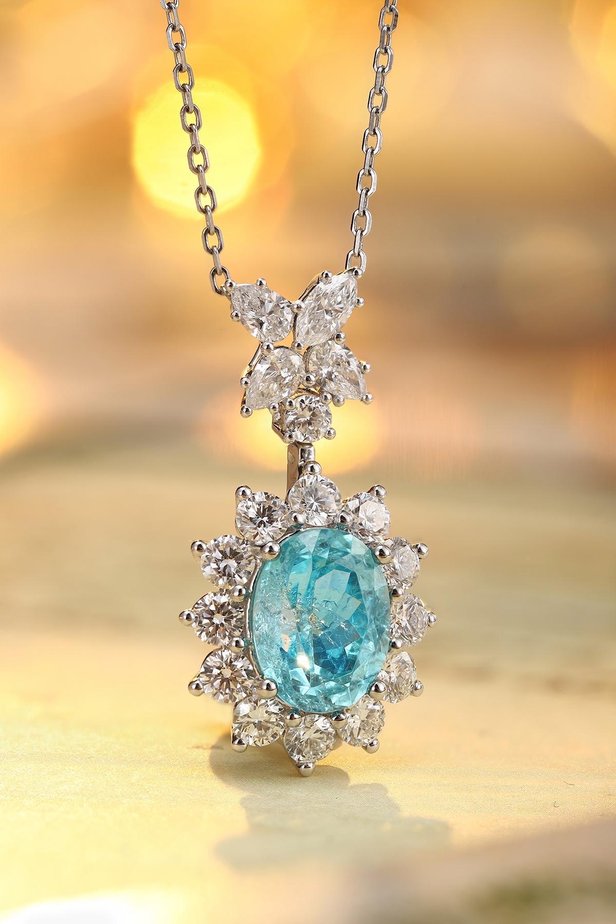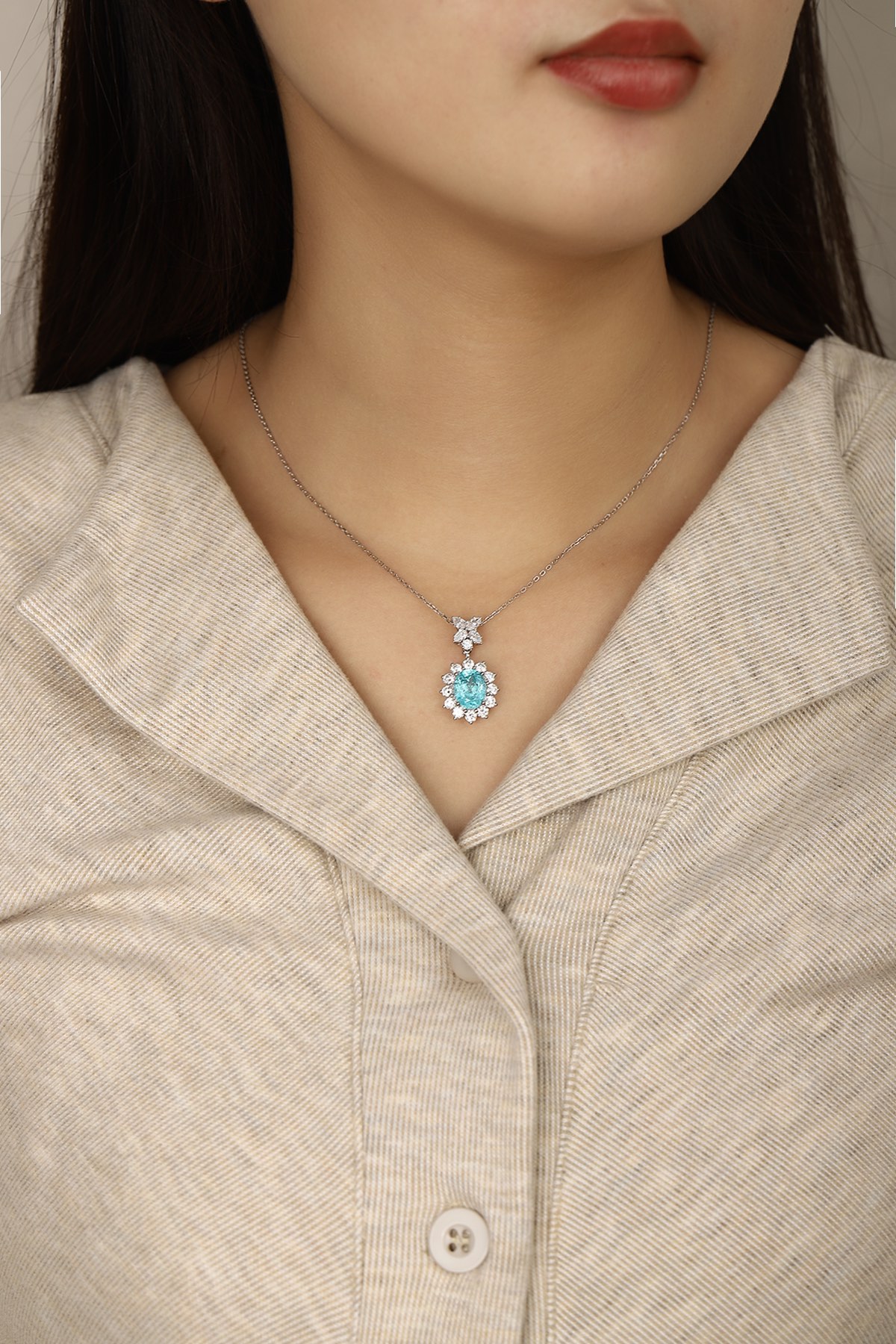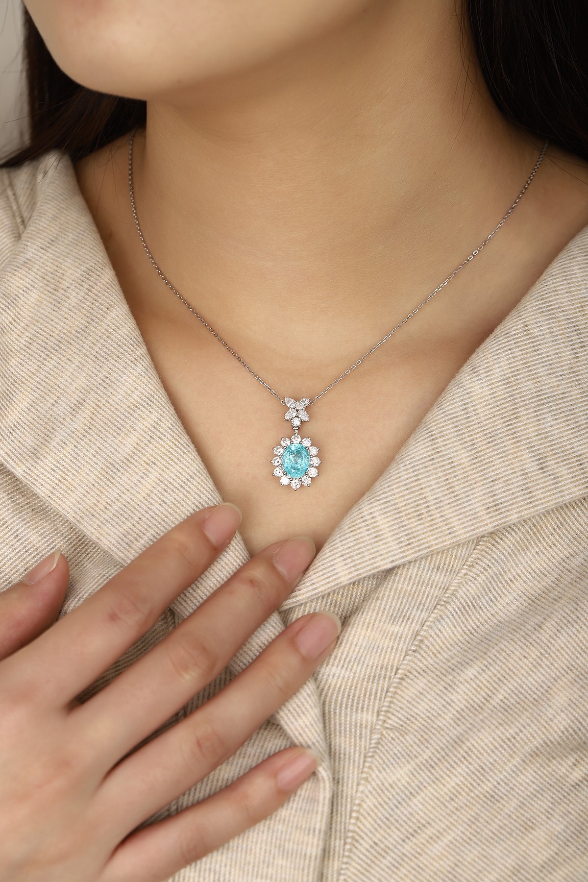 Classic Design PT950 Platinum 4.0ct Lab Grown Paraiba Pendant And 0.716ct Lab Diamond Pendant Gemstone JewelryLab Paraiba:4.0ctLab diamond:0.716ctweig..