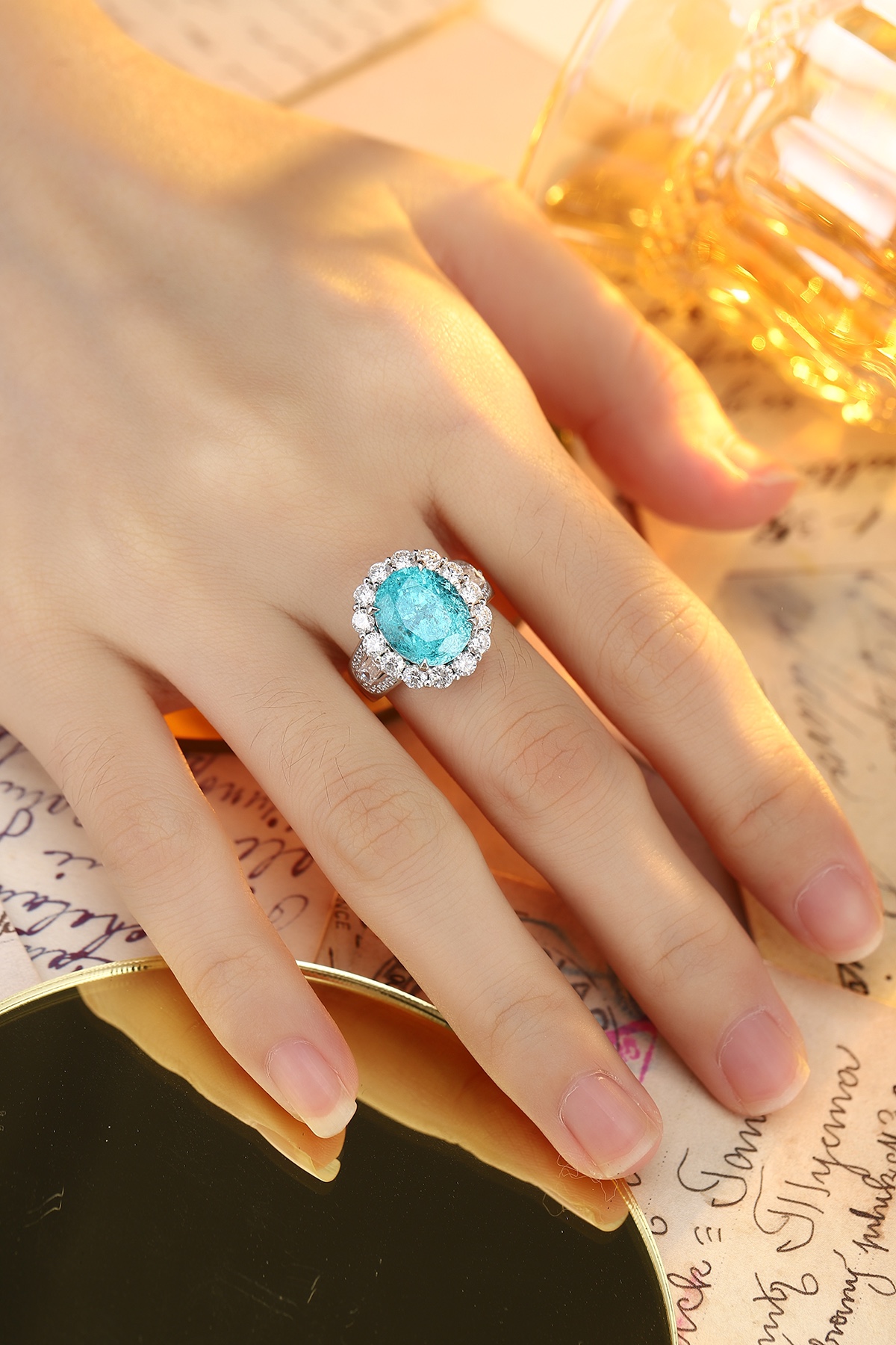 Ruif Jewelry Classic Design PT950 Platinum Ring 9.62ct Lab Grown Paraiba And 1.645ct Lab Grown Diamond Ring Wedding Bands