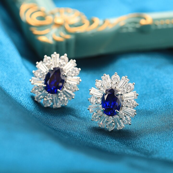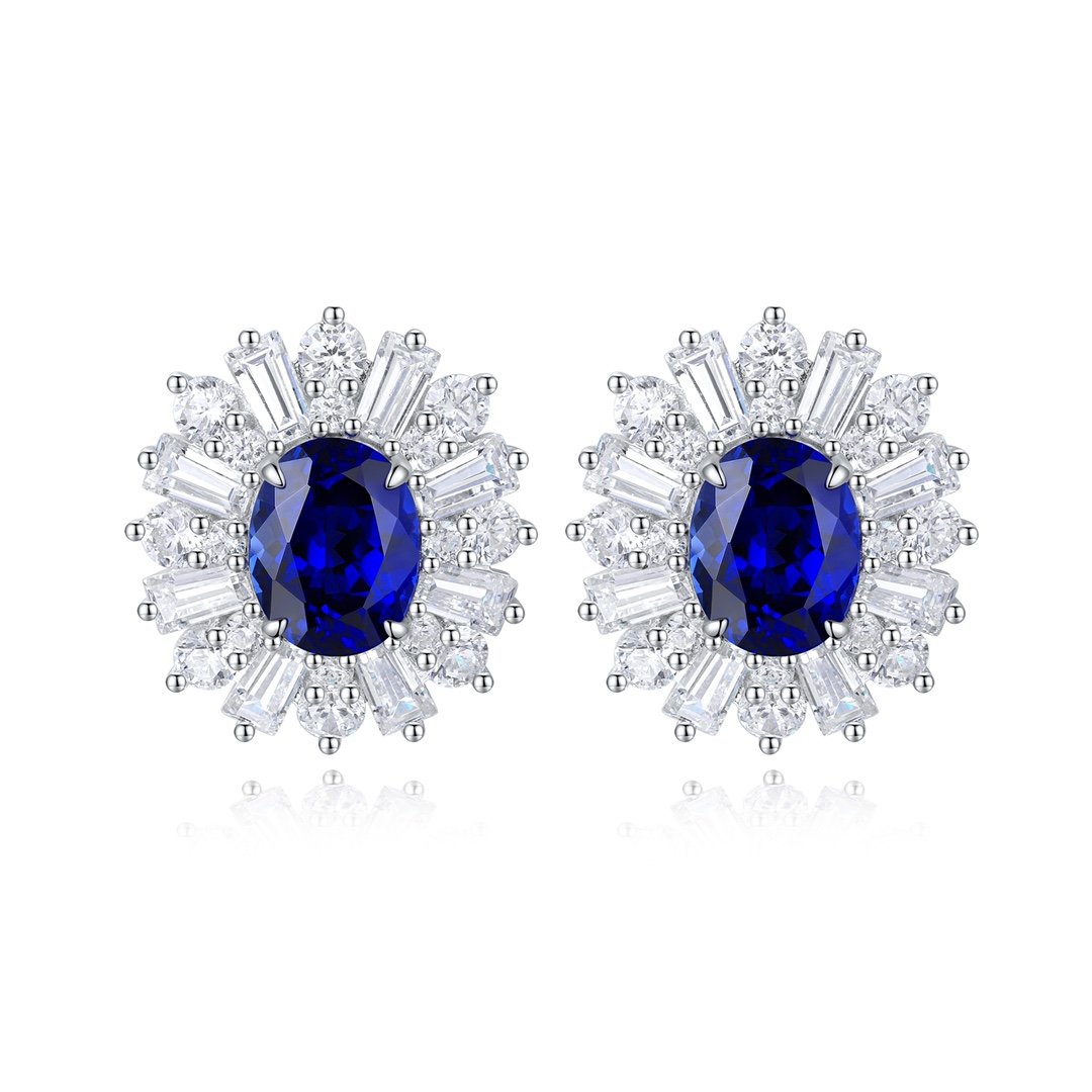 Classic Design PT950 Platinum 2.59ct Lab Sapphire And 0.914ct Lab Diamond Earrings Gemstone JewelryLab Sapphire:2.59ctLab Diamond:0.914ctWeight:4.2..