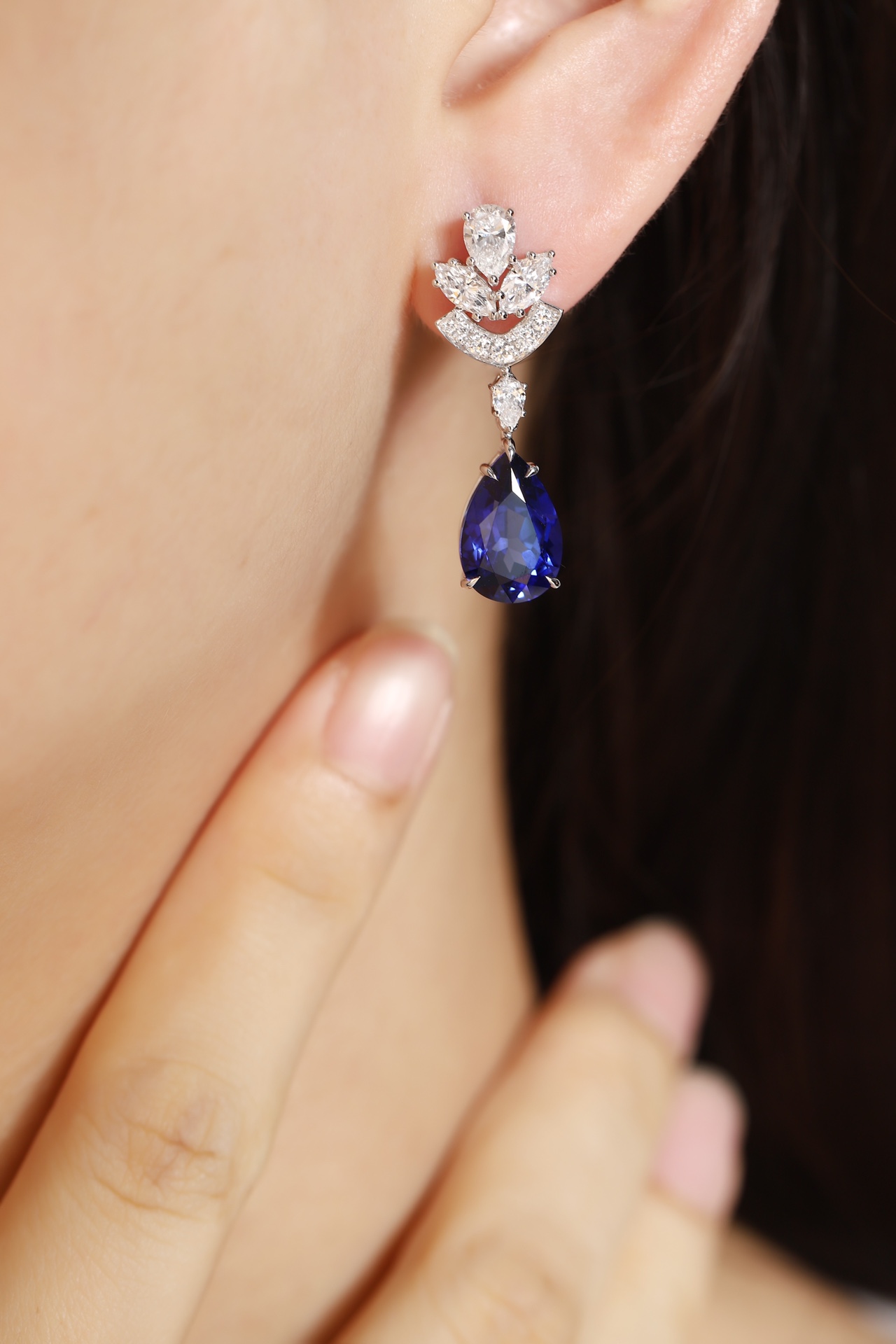 Classic Design PT950 Platinum 8.06ct Lab Sapphire And 1.95ct Lab Diamond Earrings Gemstone Jewelry
