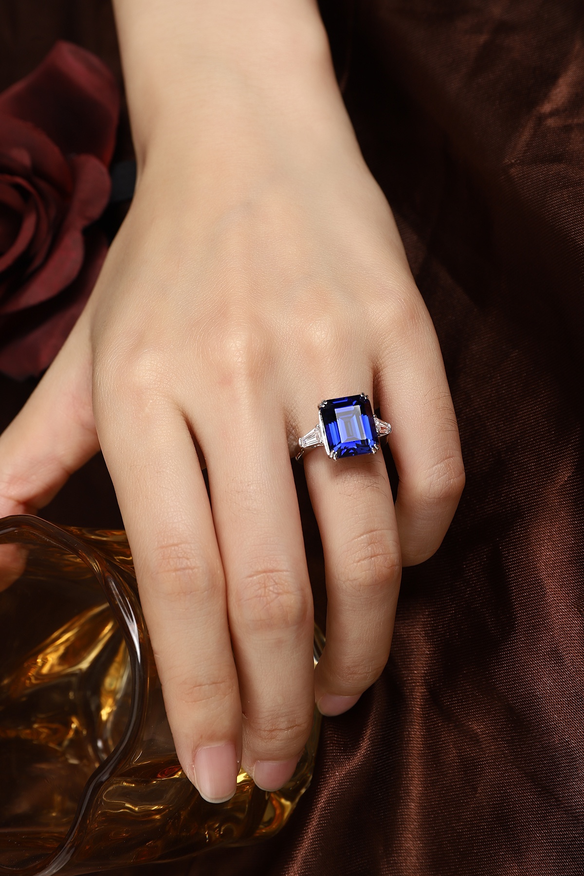 Ruif Jewelry Classic Design S925 Silver 8.77ct Lab Grown Sapphire Ring Wedding Bands for party gift