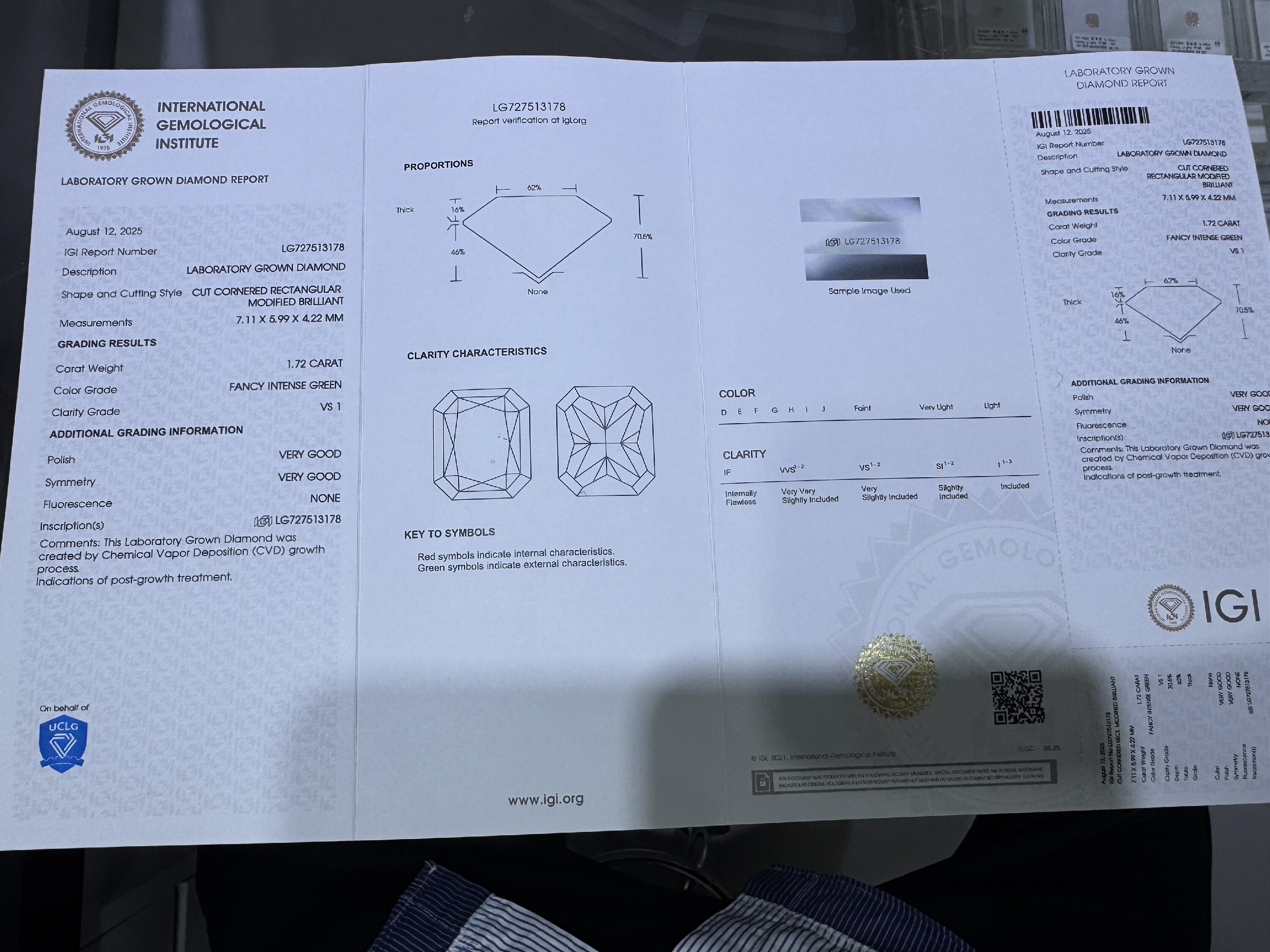 Ruif Jewelry 1.72ct Green Lab Grown Diamonds IGI certificate LG727513178 Diamonds for DIY Jewelry Making Size Customizable