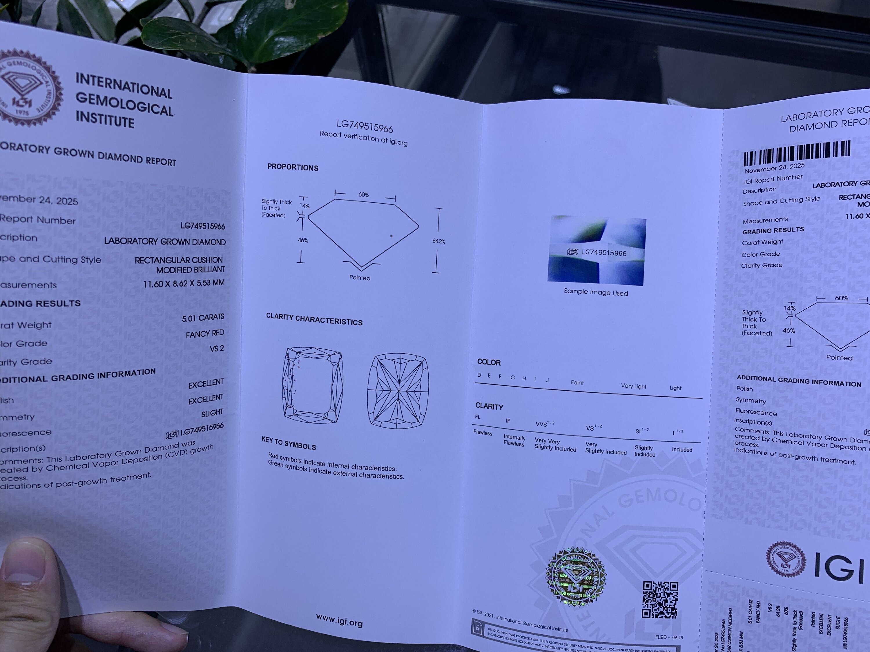 Ruif Jewelry Cushion Cut 5.01CT Red Lab Grown Diamond with IGI certificate LG749515966