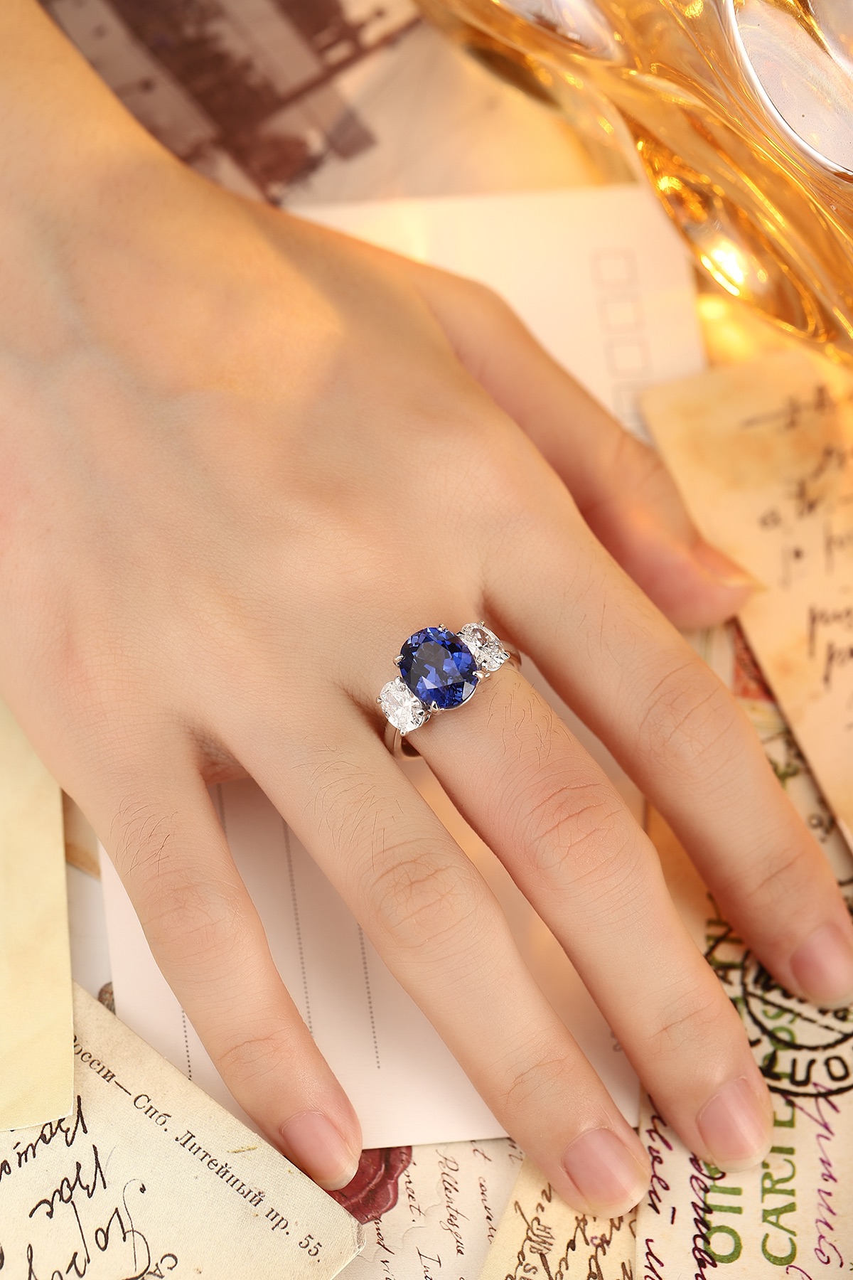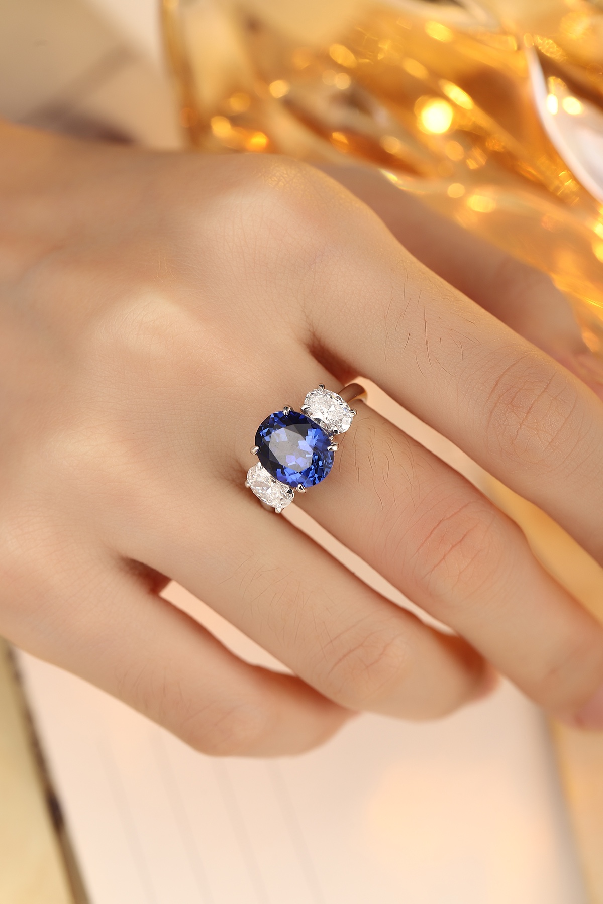 Metal:PT950Main Stone: 3ct lab grown sapphireSide stone: 0.4ct DEF lab grown diamondCustomization: 1.can do same design in 18k 14k 10k and 9k go..