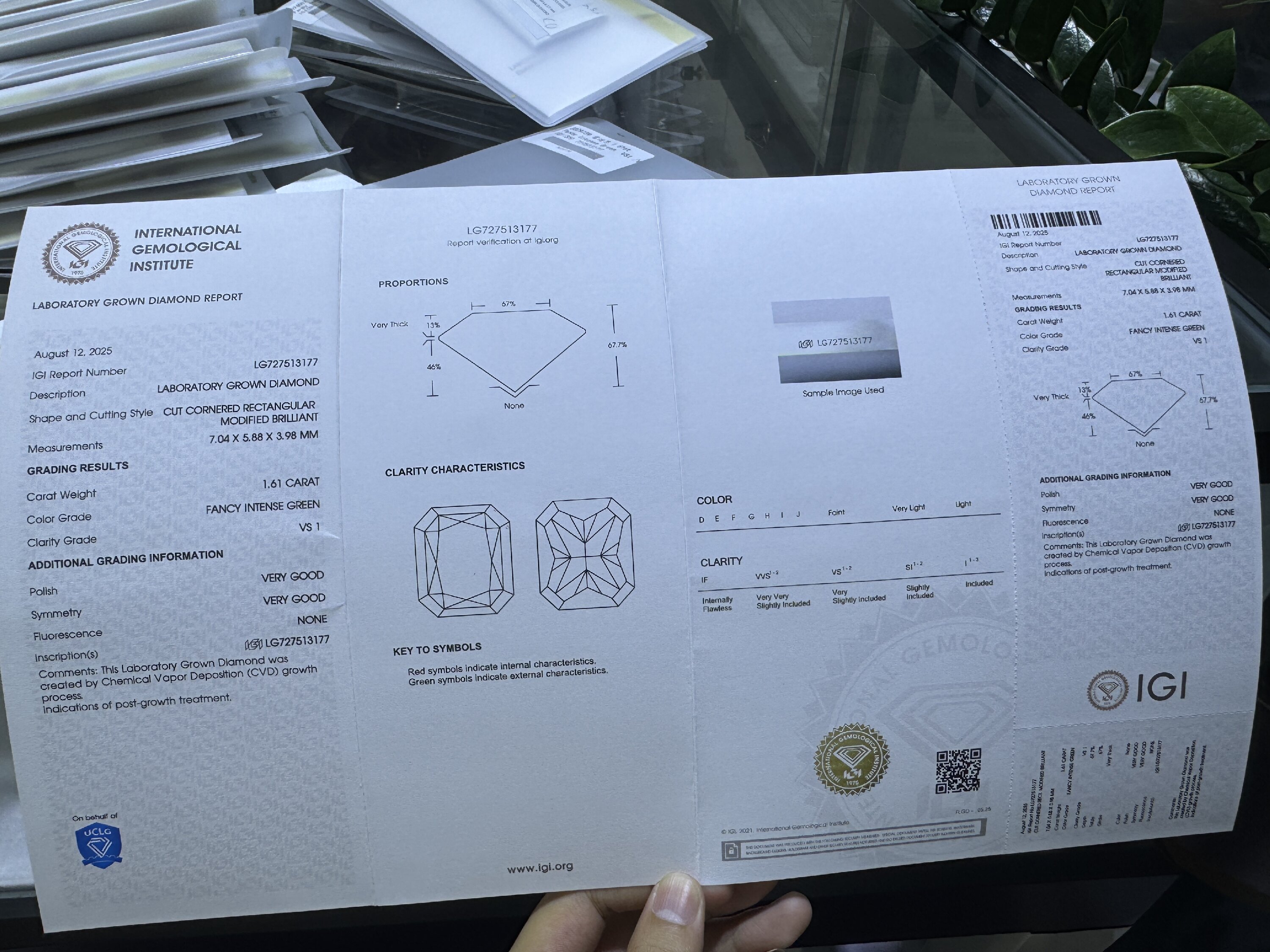 Ruif Jewelry 1.61ct Green Lab Grown Diamonds IGI certificate LG727513177 Diamonds for DIY Jewelry Making Size Customizable