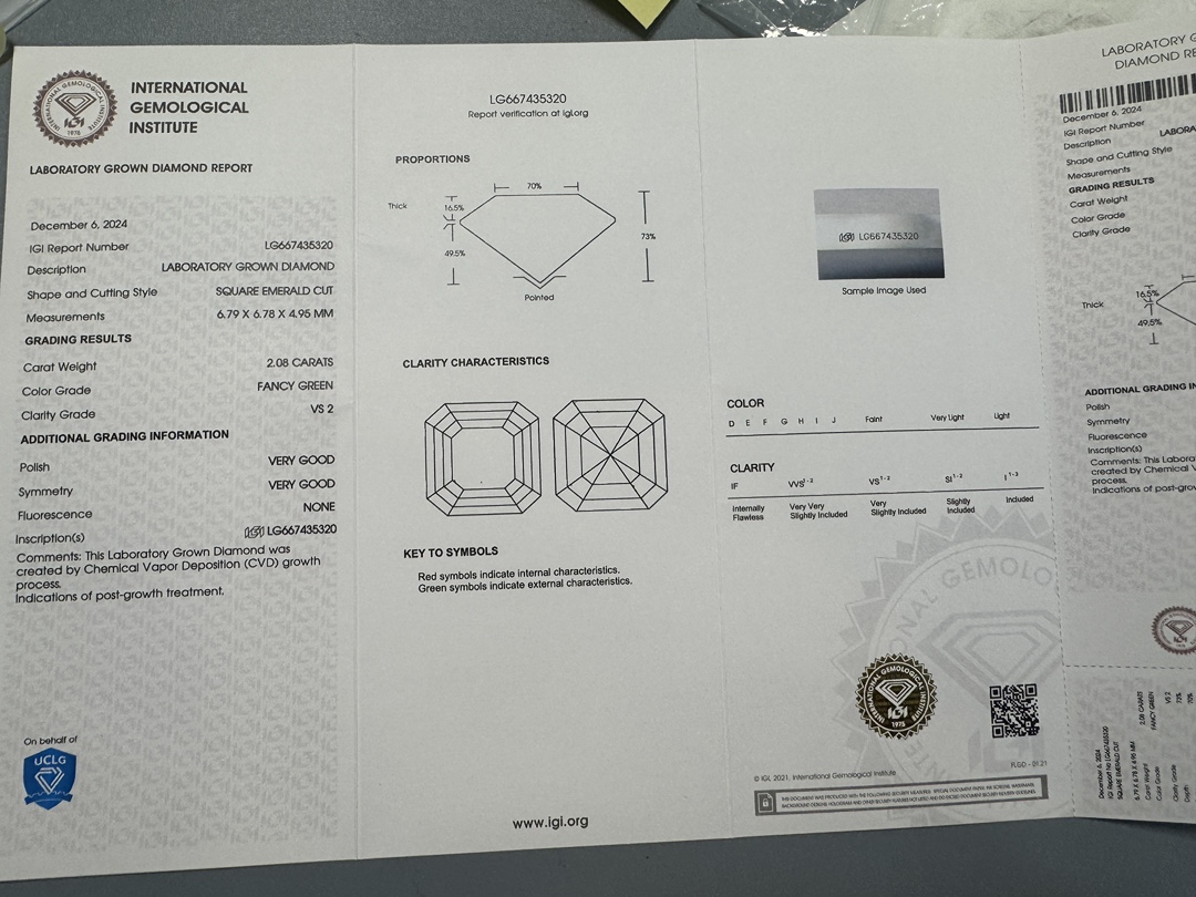 Ruif Jewelry 2.08ct CVD Fancy Green VS2 Lab Grown Diamonds IGI certificate Diamonds for DIY Jewelry Making Size Customizable