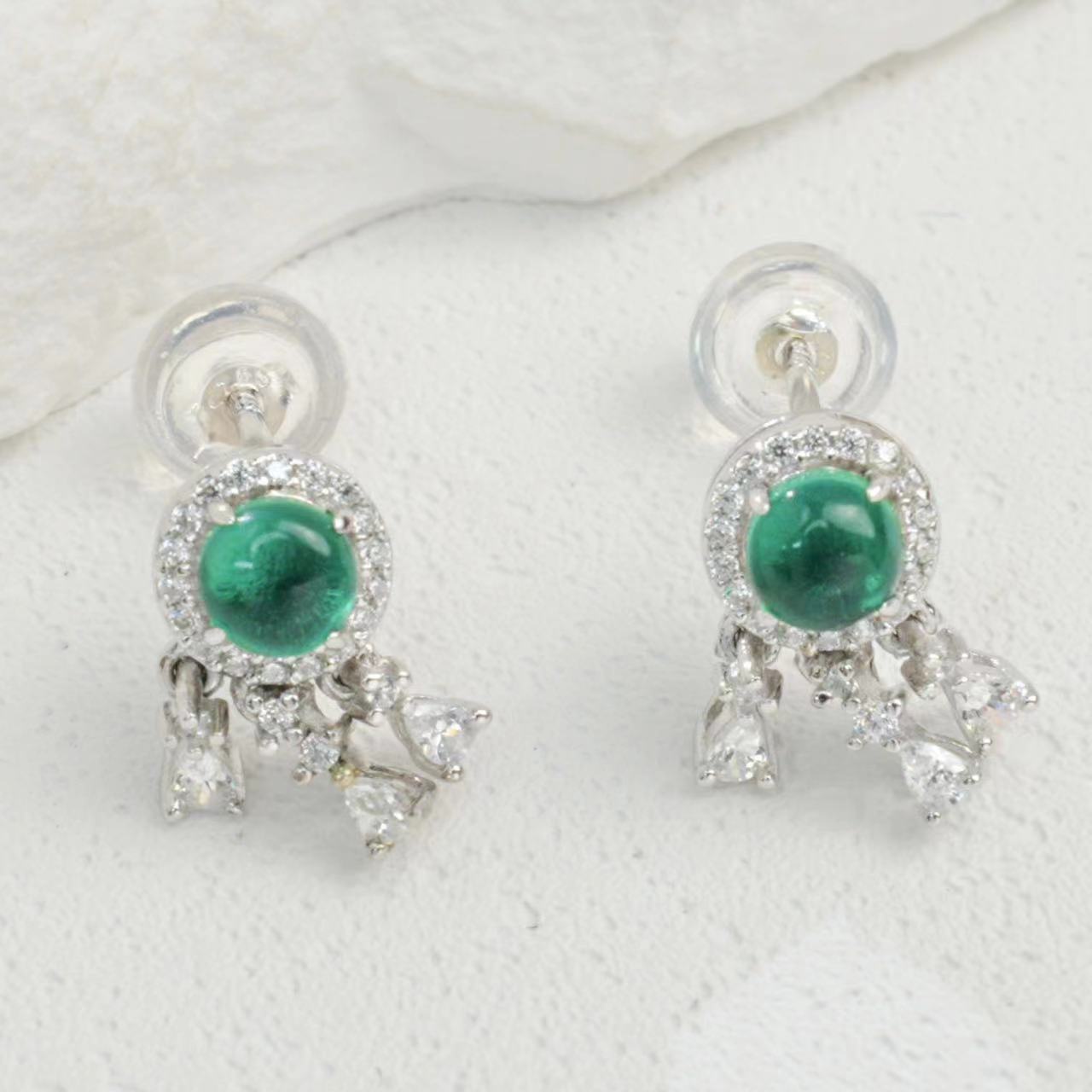 Classic Design S925 Silver Lab Grown Emerald Earrings